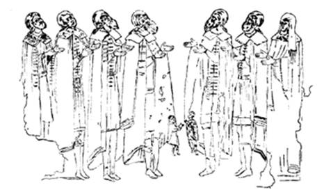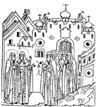 Миниатюры с Царственной Книги. Поездка царя в с. Покровское Пострижение царя Василия