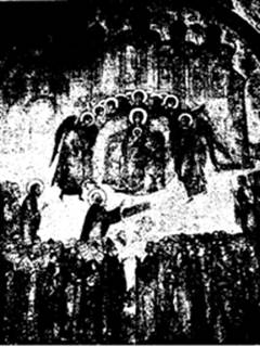 При сравнении этой росписи с аналогичною фреской XVI века из московского Благовещенского собора становится ясным то богатство композиции и внутреннего содержания, какое приобрела за столетие русская церковная живопись.