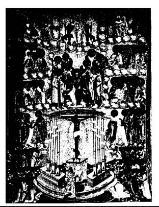 В качестве толкования к тексту псалмов он помещает иногда целые притчи. В Углицкой псалтири миниатюрист с буквальною точностью изобразил в лицах» распространенный рассказ пустынника Варлаама индийскому царевичу Иоасафу «о сладости мира сего», помещенный во многих древних «Прологах» и заимствованный из «Истории о Варлааме и Иоасафе». Смерть в образе единорога гонится за человеком, убегающим к «древу жития человеческого», корень которого подъедают «День» и «Ночь» в виде белой и черной мышей. Пропасть с головою змия внизу олицетворяет «утробу адскую», которой не миновать человеку, «непрестанно в телесных страстях пребывающему». Для большей ясности, посередине «древа жития» изображен в мечтательной позе человек – «подобие прелестей мира прельщающих». Этот рисунок снабжен кое-где пояснительными надписями, но смысл притчи предстоит вскрывать самому зрителю. Кроме притч и аллегорий, миниатюристы XV века продолжали, конечно, изображать и чисто религиозные сюжеты в формах, очень еще близких XIV веку. Новгородская Палея, писанная в 1477 г. дьяком Нестором, украшена целым рядом миниатюр. Воспроизводим из них особенно любопытную по сюжету, изображающую Вавилонское столпотворение.