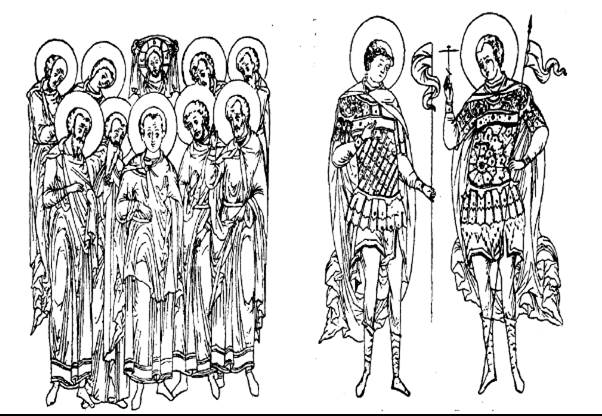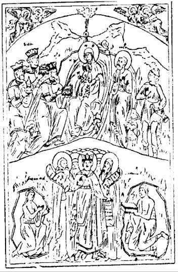 Наряду с рукописями исторического содержания, украшались, конечно, миниатюрами и священные рукописи. Символика продолжала здесь распространяться все шире и шире, потому что увеличивалось ее значение и в литературе, все обогащавшейся всевозможными толкованиями и притчами.