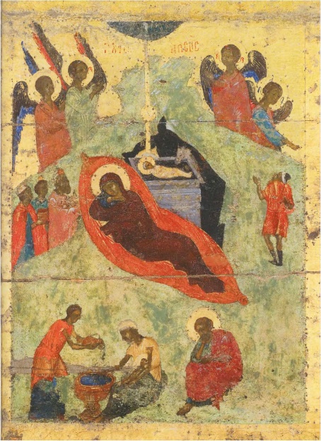 Фрагмент иконы «Рождество Христово». XV в. Новгород. Государственная Третьяковская галерея, Москва
