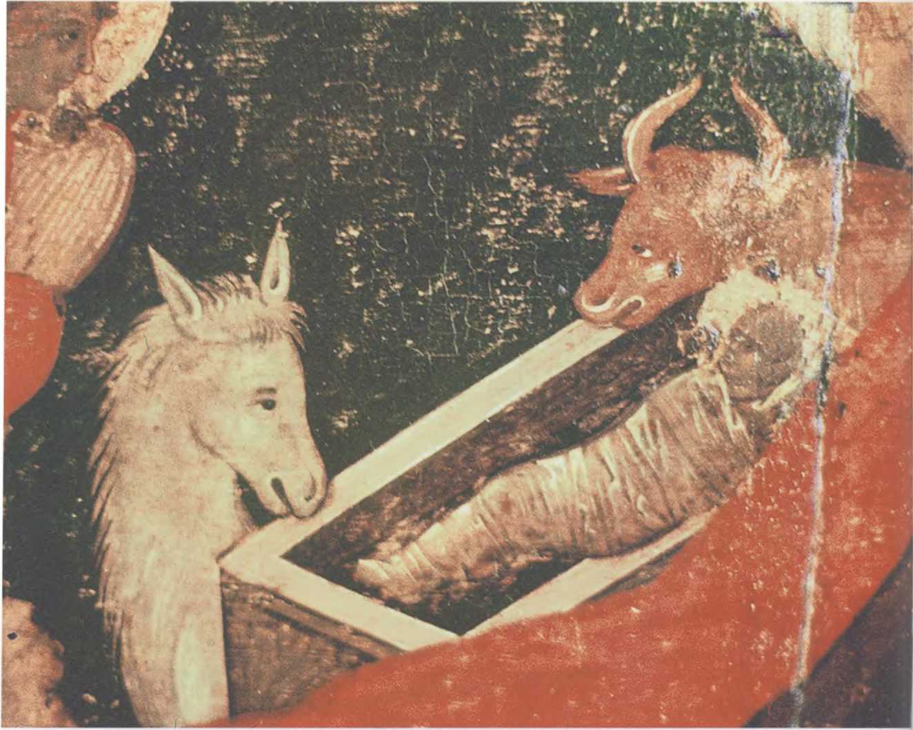 Тайна рождения Христа открывается миру в иконе не сразу: сначала она становится доступна невинным животным, которые изображены ближе всего к Младенцу, потом безгрешным ангелам, которые стоят у пещеры с покровенными руками. За ангелами к пещере приходят простодушные пастухи, и только потом – умудренные волхвы.