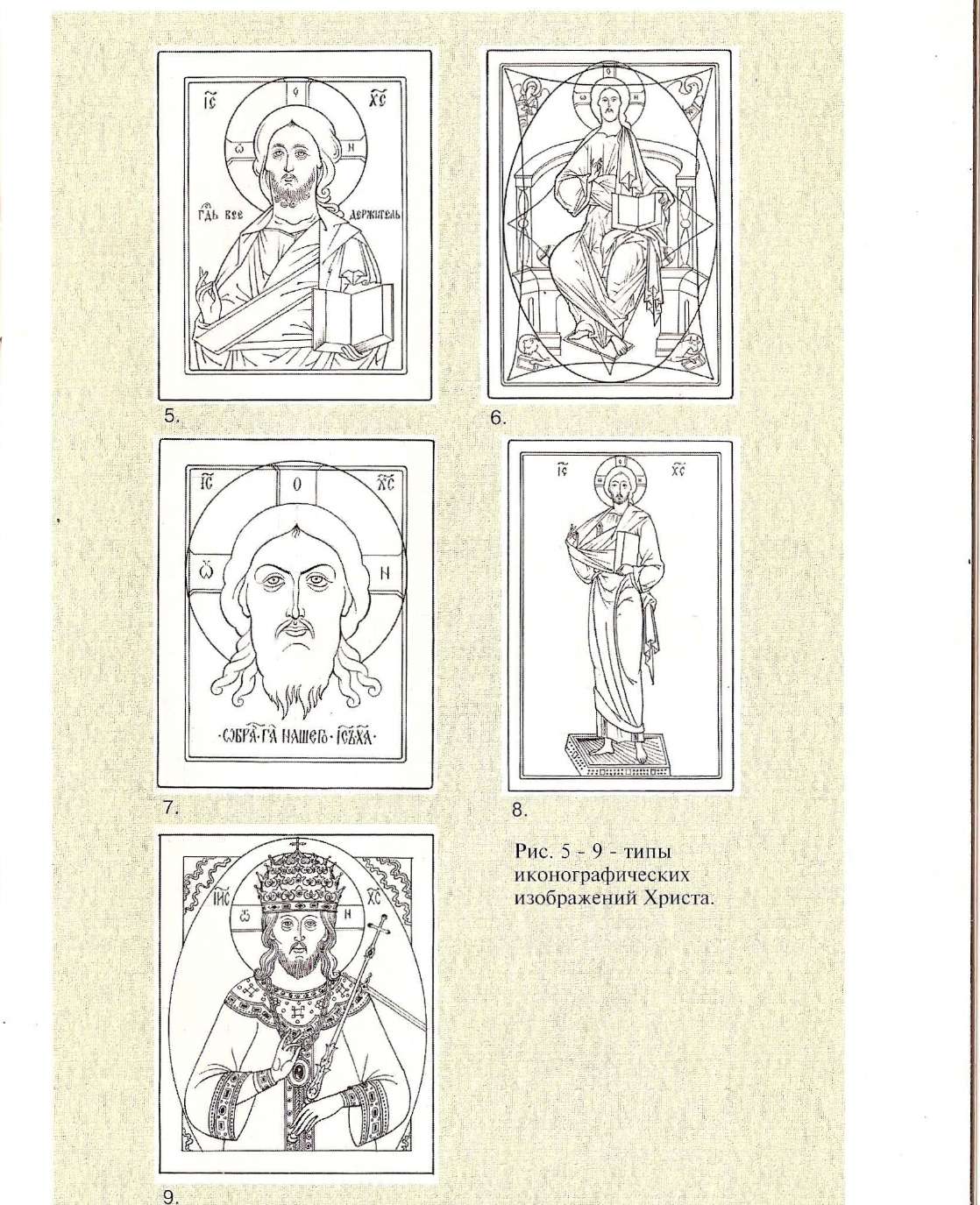 Образы Христа более консервативны, чем образы Богоматери. Чаще всего Христос изображается в виде Пантократора (Вседержителя). Он изображается фронтально, или поясно, или в полный рост. При этом пальцы его правой, приподнятой, руки сложены в благословляющем двуперстном жесте. Встречается также сложение пальцев, которое называется «именословное». Оно образуется скрещенными средним и большим пальцами, а также отставленным мизинцем, символизирует инициалы имени Христа. В левой руке он держит открытое или закрытое Евангелие (рис. 5).