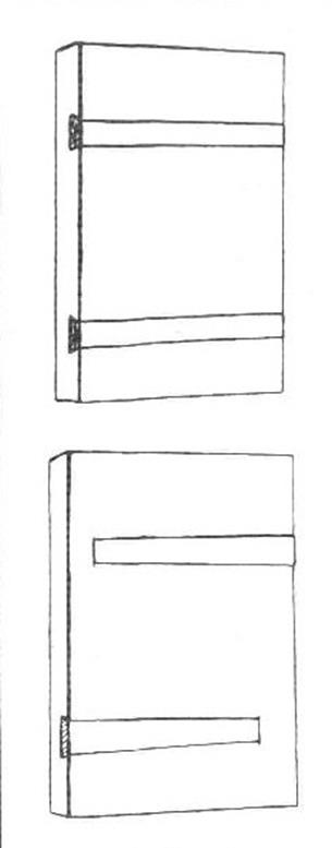 Наиболее распространенные шпонки известны под названиями «сквозных», «встречных», «рельефных», «плоских». Форма паза, в который они вставляются, носит название «ласточкин хвост». Но свое назначение – противодействовать покороблению доски – шпонки выполняют не всегда. Доска ссыхается, коробится, шпонки часто выпадают из пазов. Поэтому в конце ХVII века их стали врезать в торцы досок, откуда выпасть им почти невозможно.