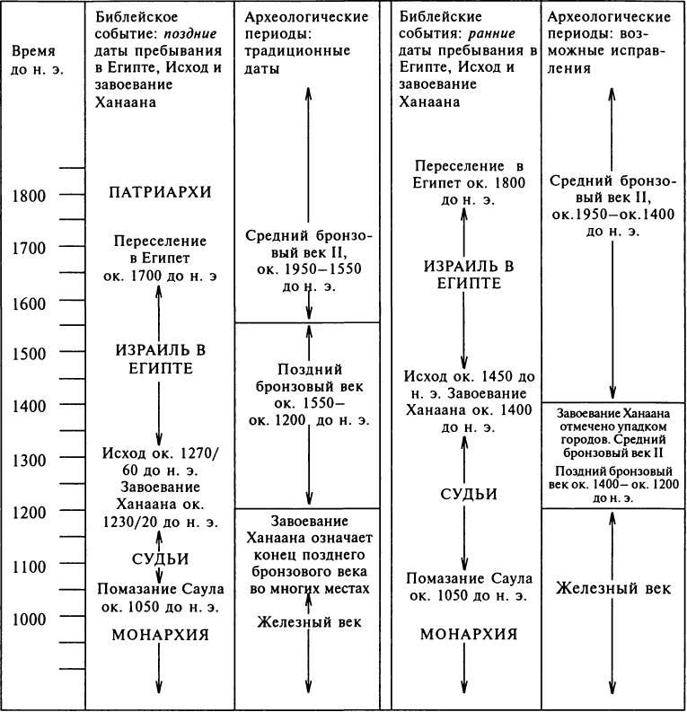 С другой стороны, археологические свидетельства из Пифома и Раамсеса в Египте (Исх. 1:11), отсутствие даты, подтверждающей образование царств Эдома и Моава к востоку от Иордана до тринадцатого века до н. э., и сотни новых поселений пастухов–кочевников, которые возникли в Израиле около 1200 г. (а также их отсутствие в более ранний период), – все это говорит в пользу того, что завоевание Ханаана следует отнести ко второй половине тринадцатого века.