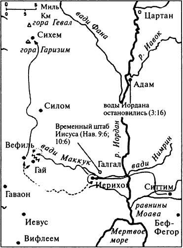 Если же считать цифры, данные в 3Цар. 6:1 и Суд. 11:26, реальными, то можно датировать завоевание обетованной земли приблизительно 1400 г. до н. э. И археологические раскопки Иерихона и Асора указывают именно на эту дату. Изучение керамики в Иерихоне, царских скарабеев, сейсмической активности в этом районе, исследование следов разрушения в результате пожара и руин, оставшихся от стен, а также использование современных методов датировки приводят к впечатляющим свидетельствам, подтверждающим, что этот укрепленный город был разрушен около 1400 г. В Асоре есть разрушенные уровни 1400, 1300 и 1230 гг. до н.э. Почти все исследователи уверены в том, что разрушение 1300 года было произведено фараоном Сети I, остальные же два – израильтянами. Ссылка в Суд. 4:2 на Асор как хананейский город (через три или четыре поколения после Иисуса Навина этот город стал израильским) исключает более позднюю датировку, если только не предположить, что в повествование Суд. 4 вкралась ошибка или же что археологические свидетельства не совсем точны. В Гае, если он идентифицирован правильно, не обнаружено никаких подтверждений тому, что город был разрушен израильтянами, и это создает определенную проблему (см.: Нав. 7:2). Дж. Бимсон на основании археологических периодов того времени установил, что земля обетованная была завоевана в 1400 г.
