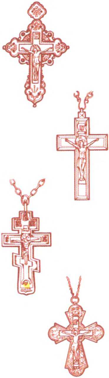 Крестик. Традиционный православный крест имеет восьмиконечную форму: три поперечные перекладины. Короткая верхняя, на ней обычно помещается надпись: ИНЦИ – Иисус Назорей Царь Иудейский. Средняя, самая длинная. Нижняя тоже короткая. На кресте она располагается наискосок: левый от нас угол выше, правый – ниже. Но Православная Церковь не отвергает и других крестов, например четырехконечного с одной длинной средней перекладиной. Если есть сомнения в отношении формы крестика, то лучше сначала показать его священнику. Крестик должен висеть на длинной цепочке или веревочке, чтобы священник мог легко надеть его на крещаемого.