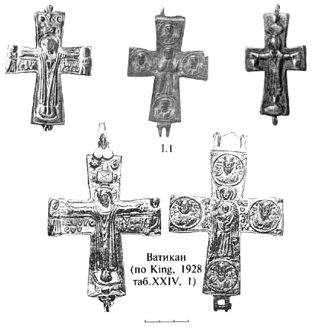См.» Шляпкин И. А. Древние русские кресты. Кресты Новгородские до XV века, неподвижные и не церковной службы // Записки отделения русской и славянской археологии Императорского Русского Археологического Общества. Т. VII. Вып. 2. СПб., 1907. С. 81.