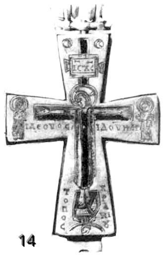 Несомненный интерес для искусствоведов представляют кресты с изображением распятого Иисуса, выполненные в достаточно индивидуальной художественной манере. Три таких креста XI века мне хотелось бы упомянуть в данной работе.