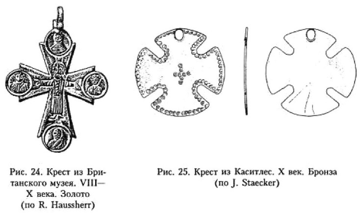 Появление крестов-тельников в Европе связано с распространением христианства, которое охватывает не только Европу, но и Азию, и Африку уже в IV–V веках «практически без участия центральной иерархии или имперской власти. Соединение дипломатических усилий с христианской пропагандой произошло в Византии лишь в VI веке»191. В VI веке Константинополь направлял специальные миссии в Судан, Аравию, Крым, Кавказ192. Новый подъём миссионерской деятельности в Византии наблюдается в конце VIII века193.