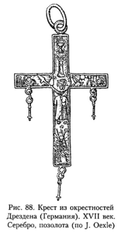 Охарактеризованный крест отличается от типичных для Скандинавии образцов так называемым грубым изображением Иисуса и, несомненно, тяготеет к традиции изображения Спасителя на нательных крестах, имеющей место в Центральной Европе (рис. 14, 17).