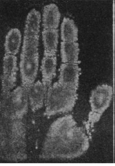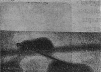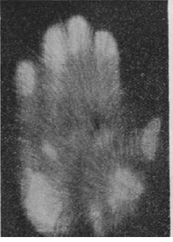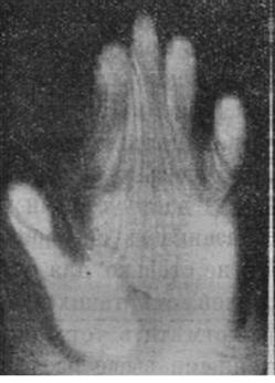 При снимании рук, Мажевский обыкновенно делает так: приготовив гидрохинонную ванну, кладет в нее в полной темноте негативную пластинку гладкой стороной вверх; затем кладет на эту гладкую сторону руку минут на 15–20; все это, конечно в темной лаборатории, и затем уже закрепляет снимок.