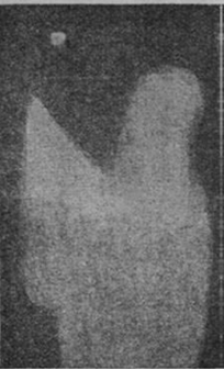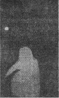 Несколько лет назад один железнодорожный служащий представил мне фотографию своей матери (рис. 152), на которой он, к своему ужасу, заметил необычайное явление, – двойника матери. Голова этого двойника видна сзади матери, над ее головой, на филенке правой половине затворенной двери. Бедный юноша был ужасно напуган, предполагая, по русскому поверию, что появление двойника около его матери предзнаменовывает ее скорую кончину.