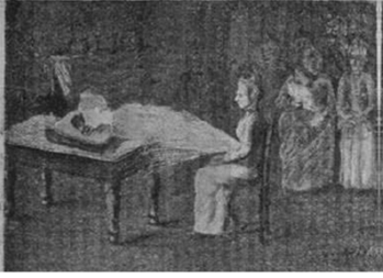 Причем техника этой подделки заключается в том, что сначала при свете магния делают снимок очень небольшой экспозиции, во время которой около сидящих, ближе к аппарату, помещается приготовленная фигура привидения, обернутая в белую простыню; затем все сидящие остаются без перемены положения, изображающий духа уходит, и снимают на том же снимке уже только одних сидящих и при значительно большей экспозиции. Конечно, при этом строго сохраняют прежние положения и ни на один волос не передвигать объектив аппарата.