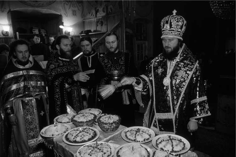 Plate 22 Russian bishop blessing the Kollyva memorial dishes at the liturgical commemoration of the dead. Olivier Martel/Corbis.
