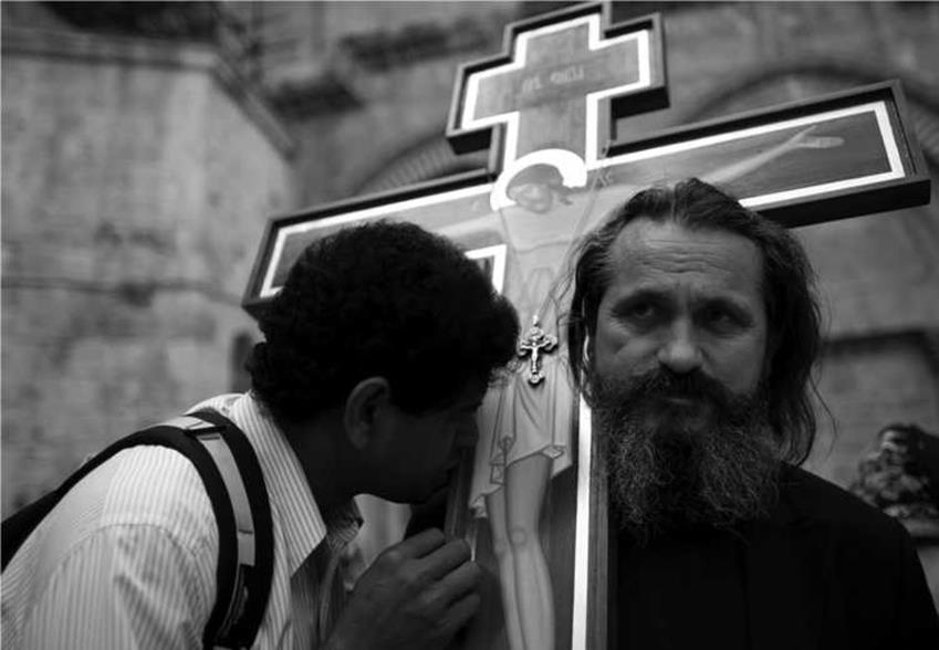 Plate 14 Orthodox pilgrim in Jerusalem venerating the icon of the cross held by a monk. Darren Whiteside/Reuters/Corbis.
