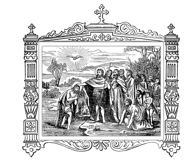 После пятилетнего пребывания в Афинах Василий возвратился на родину. Отца уже он не застал в живых, и ему предлагали занять его место и сделаться наставником при училище; но Василий не решался еще избрать себе образ жизни: ему хотелось сперва поклониться святым местам, где жил и страдал Христос, подробнее изучить Священное Писание и узнать жизнь святых отшельников. Прежде всего он желал принять Святое крещение. До сих пор, исполняя ревностно все обязанности христианина и полный веры и любви к Богу, он не мог еще участвовать в таинствах, потому что не был крещен. У древних христиан таинство крещения часто совершалось уже над взрослыми. Одно предание говорит, что Василий принял крещение от Диания, епископа Кесарийского; другое – что он крестился в Иордане от иерусалимского епископа и что, когда святитель начал совершать таинство, молния вдруг озарила Василия; из этой молнии вылетел голубь, спустился на Иордан и, возмутив воду, опять взлетел на небо.