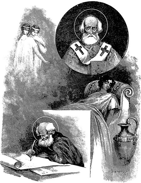 В это время он в тонком сне удостоился дивного видения Богородицы.