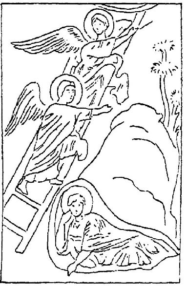 2) Единородный Сын. Кроме предложенного здесь в снимке (рис. 2), мы будем иметь в виду еще два перевода этого сюжета: один из издания Даженкура, вероятно, XVI в. (том VI, табл. 120), идругой в рисунке из собрания г. Филимонова, на обороте с надписями начала XVII века.
