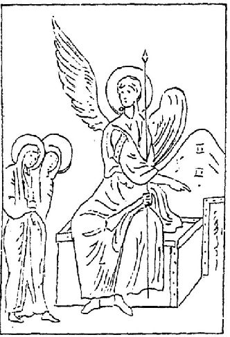Так, например, в древнем рельефе на амвоне Веронского собора Богородица, еще без сияния кругом головы, стоит перед благовествующим Ангелом: «ė senza nimbo, ed in piedi second l’antica verità, non essendo stato uso Ebraico d’inginocchiarsi» – замечает Маффей, Verona illustrate, кн. III, гл. 3.