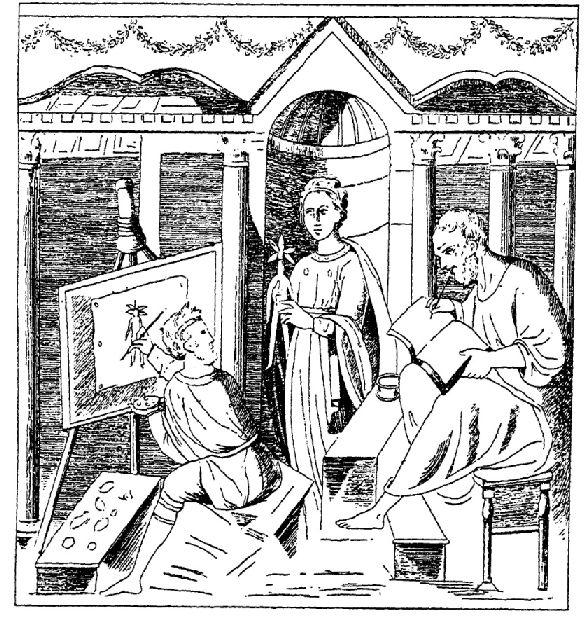 Судя по Греческому Подлиннику, а также по дошедшим до нас западным художественным руководствам ранней эпохи, каковы сочинения: католического монаха Теофила XIII в25. и итальянца Ченнино Ченнини конца XIVв.26 (по редакции 1437 г.), – оказывается, что в раннюю эпоху на западе, как и позднее на востоке, искусство не отделялось строгими границами от ремесла. Как Дионисий начинает свое руководство статьями чисто ремесленного содержания; так и сочинения Теофила и Ченнини имеют предметом только ремесленную сторону производства. Сочинение Теофила состоит из трех частей. 1-я часть, имеющая предметом живопись, вся посвящена техническим статьям о красках, о письме на дереве и на стенах, о золочении, о производстве миниатюр в книгах. 2-я часть содержитнаставления о стеклянном производстве, то есть, как изготовлять печи для этого предмета, как делать окна и как их расписывать – наставления, относящиеся к той цветущей эпохе готического стиля, когда расписанные стекла составляли существенную принадлежность храма. В этой же части, между прочим, помещены сведения о финифти и о Греческом стекле, употребляемом в мозаиках (гл. XV). Наконец, 3-я часть посвящена производству металлическому, из железа, меди, бронзы, золота и серебра, о басемных и обронных работах, и ниелло, о закреплении и впайке в металлы драгоценных камней, о том, как делать церковные потиры, подсвечники, кадила и паникадила, и другую металлическую утварь.