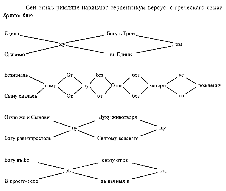 Рифмы краесогласнии. – Это большое стихотворение анонимного поэта было написано в 1691 или 1692 г. (в двух известных списках даты расходятся) как отклик на двор цовый переворот 1689 r., свергнувший царевну Софью. Нет сомнения, что автор – опытный поэт, ибо начинающий автор не мог бы продемонстрировать такое свободное, великолепное владение поэтической техникой, включая нечастый в то время межстрофический перенос. Он не воспользовал ся также расхожей парной рифмой, но отдал предпочтение пятистишию, образованному из пары двустиший и пятого холостого стиха (ааббх). Это изысканная и довольно редкая в русской силла бической поэзии строфа, она была внесена в русскую строфику из польской поэзии, ее образец был впервые дан Симеоном Полоцким в «Псалтири рифмотворной», затем она встречается преимущественно в стихотворениях на эсхатологические темы, в том числе в песенной поэзии. Стихотворная техника «Рифм краесогласных» позволяет утверждать, что их создатель – талантливый и опытный литератор, определенно не принадлежащий к монашескому сословию, – не говоря ни слова о церковных делах, он в то же время полон живого интереса к делам мирским, причем особенно часто и со знанием дела говорит о современной ему судебной практике и присущих ей пороках.