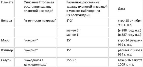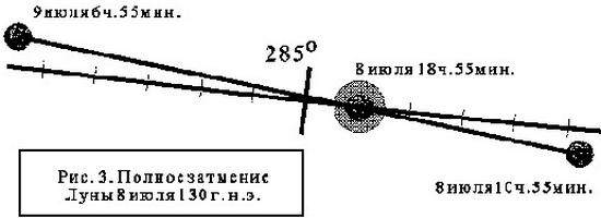 Прежде всего нужно отделить собственно результаты подсчетов от их экстраполирующей интерпретации. Авторы брошюры считают, что «астрономия опровергает историю» там, где «традиционные хронологи меняли их (затмений. – Рец.) характеристики (скажем, вместо июньского затмения предлагали сентябрьское или вместо утреннего вечернее)» (с. 5). Ясно, что сами по себе результаты сопоставления данных авторами брошюры говорят не об «опровержении» или «подтверждении» истории астрономией, а всего лишь о случаях совпадения или несовпадения данных, извлекаемых из исторических источников, с данными, извлекаемыми из астрономических таблиц.