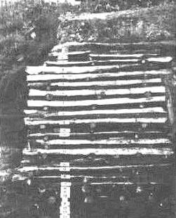 Какова точность их датировки? Если они лежат прямо на мостовой, т. е. между двумя дендрохронологически датированными настилами, то примерно 10–15 лет. По мере удаления от датированных объектов точность уменьшается до 30, 40, а иногда до 50–60 лет.