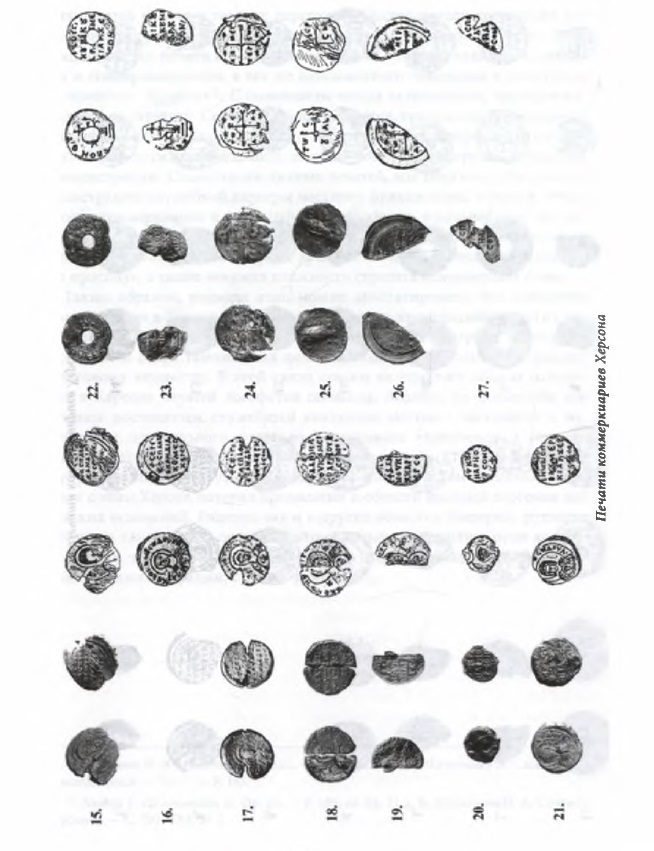 В середине 80-х – начале 90-х гг. XX в. Количество известных печатей херсонских коммеркиариев несколько увеличилось благодаря публикациям Г. Закоса1946, К. Д. Смычкова1947 и выходу в свет первого тома каталога моливдовулов из собрания Думбартон Оакс1948, в которых представлены еще 12 интересующих нас печатей. В моих совместных работах с И.В. Соколовой, А.И. Романчук и К.Д. Смычковым введено в оборот еще четыре экземпляра1949. Таким образом, число известных моливдовулов коммеркиариев Херсона до недавнего времени составляло 32 экземпляра.