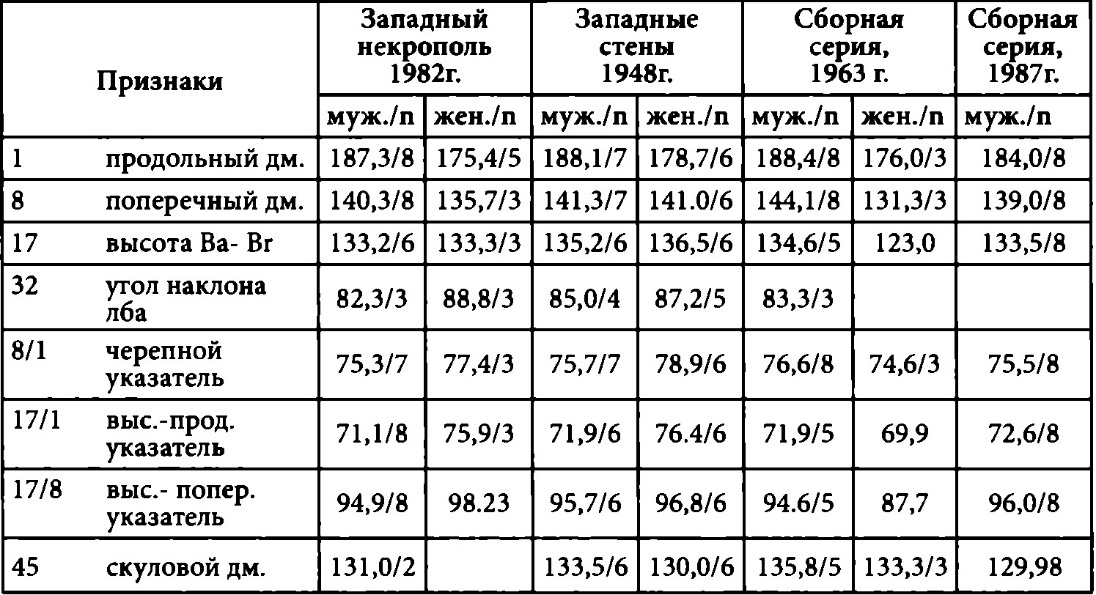 Дебец Г. Ф. Антропологический состав населения средневековых городов Крыма // Сборник музея антропологии и этнографии. – M.; Л., 1949. – Т. 12. – С. 334–385; Зиневич Г. П. Указ. соч. – С. 140–246; Назарова Т. А. Краниологические материалы... – 1990. – С. 26–31; Иванов A. В. Антропологические материалы из раскопок часовни в квартале X «6» Херсонеса 1996 г. // X. сб. – 1998. – Вып. 9. – С. 253–265.
