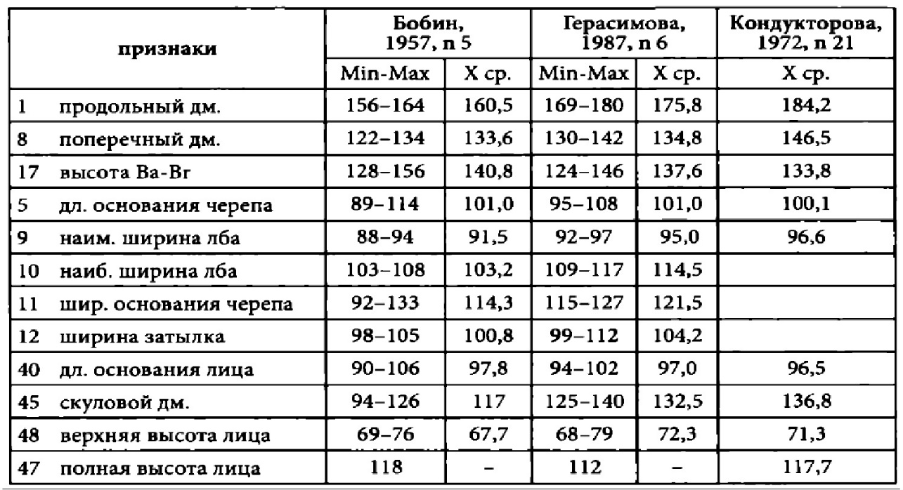 Дебец Г. Ф. Палеоантропология СССР // Труды Института этнографии. – 1948. – Т. 4. – С. 343; Беневоленская Ю. Д. Антропологические материалы из средневековых могильников Юго-Западного Крыма // МИА. – 1970. – № 168. –С. 204.