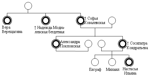 Итак, вот каким образом применяется новое, более разумное начало наследования. Кто ближе по крови, тот ближе к имению. Здесь главное правило то, что ближайшее колено, ближайшая линия родства исключает дальнейшую. Если в линии отцовской есть родственники, то нечего восходить выше и искать еще наследников в линии деда. Право боковых родственников на наследство принадлежит им в той мере, в какой они происходят от ближайшего родителя к умершему родственнику. Другое правило: внутри линии тот, кто ближе к общему родителю, исключает дальнейшего. Так в приведенном чертеже родной племянник В исключает сына своего Л, а если бы был жив родной брат О, то ни В ни Л не имели бы права. Третье правило: родственники, состоящие в ровных степенях равных линий, имеют одинаковое право и делят между собой наследство. Нельзя не отдать этому способу, как более разумному, предпочтение пред римским. Такова, как увидим впоследствии, и наша система определения родственных прав на наследство. Это чистая система наследства по линиям (Linealfolge).
