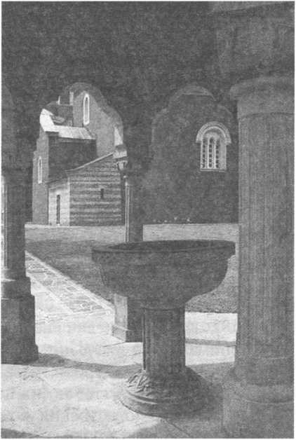 Еще один храм находится к югу от соборного. Это небольшое здание с широким куполом, западный фасад которого соединен переходом с корпусом келий.
