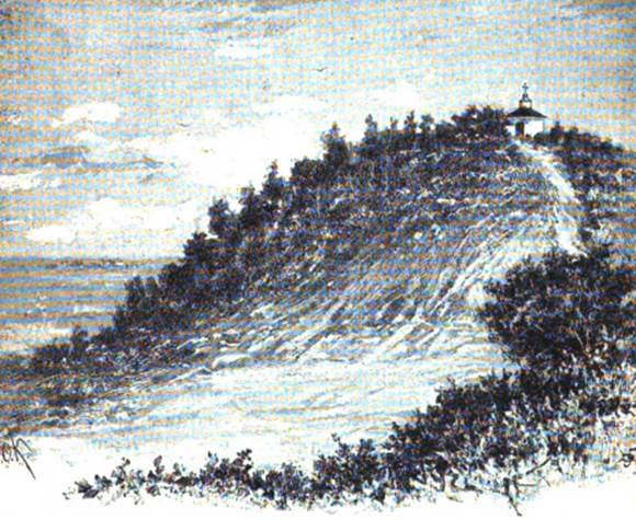 Рис. 15. Гора Цыпина с часовней в память Императора Александра в окрестностях Ферапонтова монастыря.