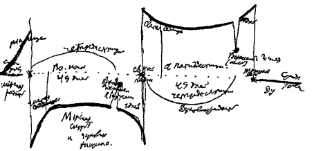 4. Мудрое построение цикла пасхального: полнота мирской радости (масленица) контрастирует с резко наступающим постом (1-я нед<еля». Пост сперва постепенно ослабляется, потом на 7-й нед<сле) снова делается строгим и достигает скорого своего предела в святую ночь, где он резко контрастирует с порывом радости. Затем радость постепенно ослабляется и затем снова начинает нарастать – к Троицыну дню, где духовная радость снова достигает апогея и здесь внезапно сменяется мирскою радостью, началом коей являются троицкие березки. Гадания и проч<ее). Цикл скорби обнимает 7 седмиц, и цикл радости – 7 седмиц. Итого, 2x7 седмиц выделенных из года, – особых – пресуществленного времени.