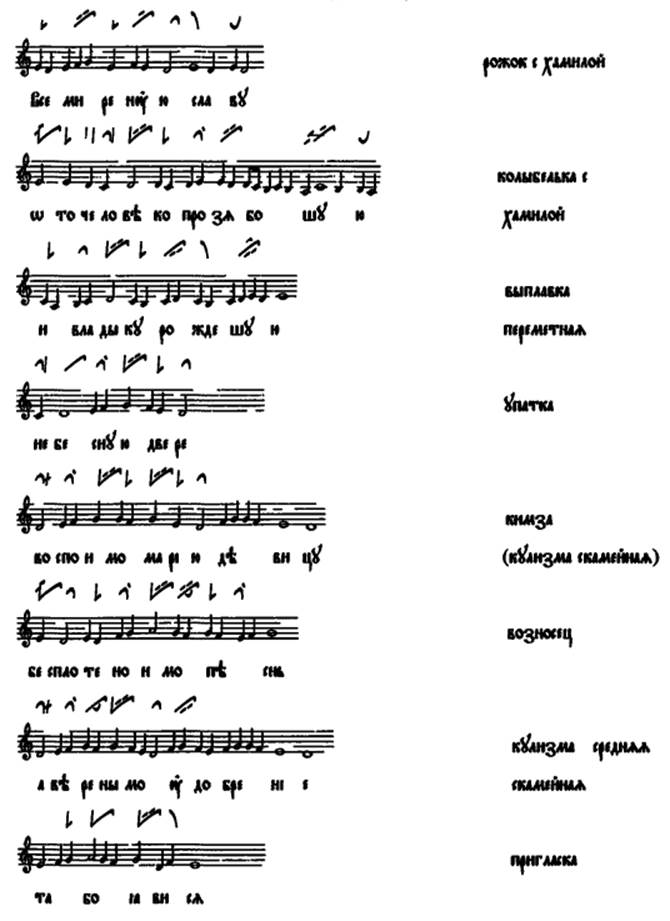 | Велнкне (боль шие) ипостазв | Знаки средне и поздневизантийской нотации, указывающие на различные элементы певческой выразительности. | 2 | 2 |