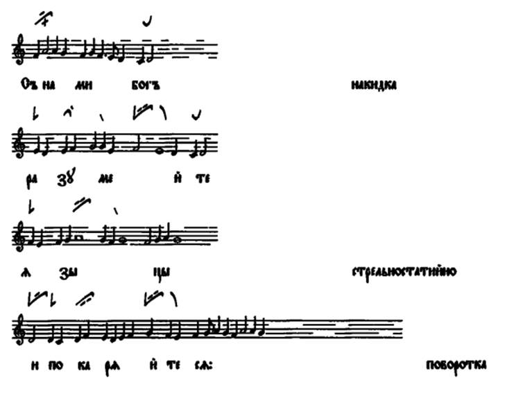 | Ананейка | Сочетание слогов «на» «не» «ни» не имеющих смысловой связи с богослужебным текстом в песнопении древнерусской традиции Аналог кратимы в византийском калофоническом пении. | 2 | 3 |