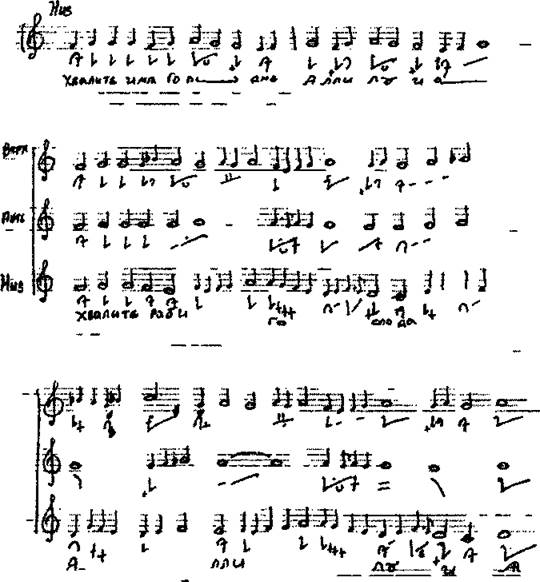 Пример № 8. Хвалите имя Господне. Строчное пение