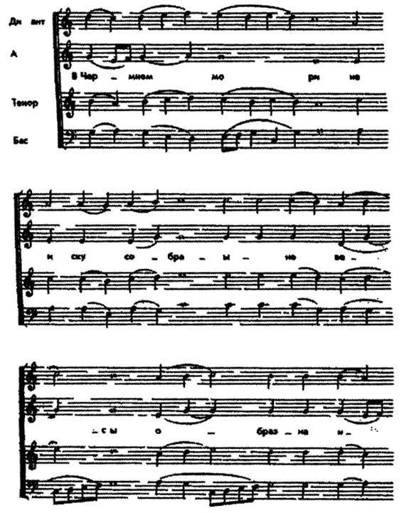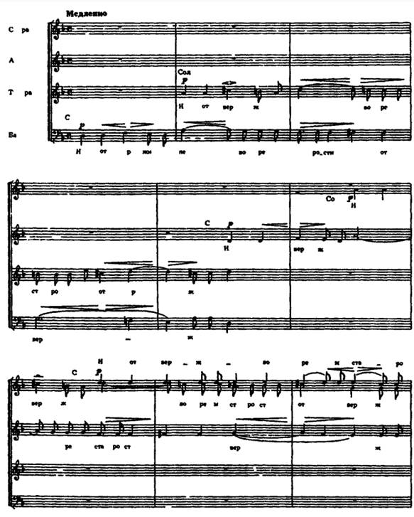 Пример № 10. М. Березовский. Хоровой концерт «Не отвержи мене» Начало