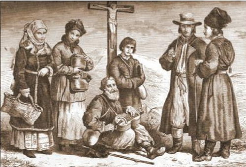 Странствующий старец-слепец с лирой и крестьяне с. Скалата в восточной Галиции. Рис. Я. Головацкого, XIX в.