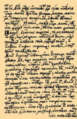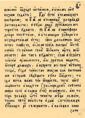 Рукопись из Государственного исторического музея в Москве, собр. Уварова, № 632 (486), первой половины XIX в., л. 222 («Послание Домникии» Иоанна Вишенского)