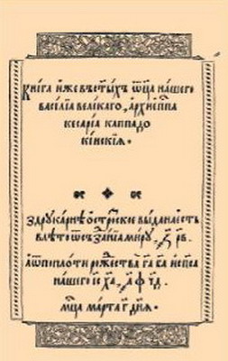 Титульная страница «Книги о постничествγь» сет. Василия Великого (Острог, 1594)
