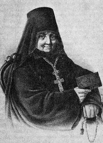 Но кроме юродивых в монастыре были и старицы-подвижницы, христианский подвиг которых состоял в преподобии, что мы, как и юродство, связывали с «внешним» деланием. Сюда должна быть, прежде всего, отнесена первоначальница монастыря монахиня Александра (Мельгунова), богатая дворянка, помещица, оставившая светскую жизнь, раздавшая имение и поселившаяся рядом с Саровским монастырем. Она была большим знатоком церковного устава, отличалась начитанностью в святоотеческих трудах, много помогала местным крестьянам. С ее маленькой общинки, состоящей из нескольких крестьянок – девиц и вдов – и начался Дивеевский монастырь. Именно она поручила юному еще дьякону Серафиму Саровскому опеку своей общины. Ее старчество выросло на строгом подвижничестве: соблюдении устава саровского монастыря, его традиций (а это – «строгое благочиние, продолжительная церковная служба; простота, убогость и суровость монашествующих, старинное столповое пение, по чину Афонской горы, скудость пищи... пребывание в безмолвии и вместе с тем в непрестанной молитве, беседуя всегда мысленно с Богом, обладание мудрым и тонким познанием сердца человеческого»282, жизнь под руководством саровских старцев-духовников, дела милосердия и благотворительности). Она тайно помогала крестьянам в их полевых трудах. В воскресные дни после службы «на церковной площади поучала крестьян, говоря им о христианских обязанностях и о достойном почитании праздничных и воскресных дней». Летописец подчеркивает: «Мать Александра провела всю свою жизнь в таких великих трудах и подвигах, что исполнилась благодати и даров Духа Святаго».