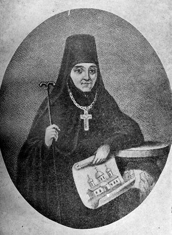 Связь со старцами в монастыре также существовала почти всегда. В XVIII в. это был святитель Тихон, в начале XIX в. сюда приезжал несколько раз известный старец монах Василий (Кишкин), из плеяды учеников прп. Паисия (Величковского)307. С игуменьей Афанасией (Гавриловой) поддерживал тесные отношения свт. Игнатий Брянчанинов. Игуменья Афанасия являла собой чистый пример «внешнего старчества», когда насельницы воспитывались только примером жизни старицы. Была малообразованна, но очень духовна. В монастырь она попала почти «из-под венца», убежав от жениха в ночь перед свадьбой. Боясь гнева отца – донского есаула, – какое-то время скрывалась в лесу, без еды и теплого платья. Много претерпела лишений и бед в монастыре, по послушанию игуменье ездила просить благословение у отца на монастырскую жизнь после годичного пребывания в обители. Отец смеялся над ней и стал угощать ее мясом, а когда она съела его угощение, то смягчился и с благословением отпустил. В игуменьи Афанасия была выбрана за свои высокие духовные качества. Ее постоянной молитвой было чтение Псалтири со слезами. Святитель Игнатий высоко отзывался об игуменье Афанасии как о старице и говорил, что «она, своею жизнию, уподобляется Антонию и Феодосию Печерским»308. Умерла она в 1847 г.