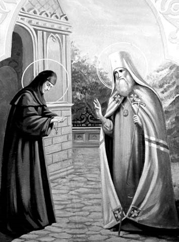 Радовались сестры приезду батюшки, как Светлому дню. Все, кому было можно, бросят, бывало, свои работы, оденутся по-праздничному и ходят за ним всюду по монастырю. В церкви во время служб батюшка стоял около матушки игуменьи... Из церкви батюшка пойдет, бывало, к матушке в корпус рядом с нею; и мы все за ними...».