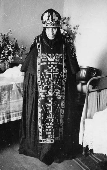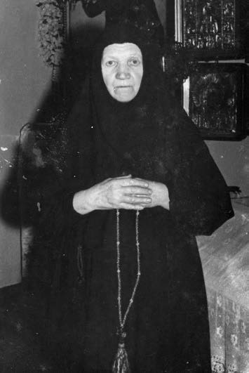 У молодых послушниц были разные послушания: трудились при храме по месту жительства, другие «убирали иконы», делая фолежные ризы1087 для них, иные посещали пожилых и немощных монахинь. Об одном таком посещении вспоминает схимонахиня Антония (Казакова), постриженица о. Митрофана: «Матушка Димитрия из деревни Гнилуша очень хорошо пела и читала, она монастырская матушка была, очень красивая внешне. Службу знала почти наизусть. Ей батюшка сказал заранее, что в 40 лет она ослепнет и до смерти слепая будет. Действительно, она до смерти читала в церкви наизусть шестопсалмие. Я посетила ее года за два до смерти с Анастасий Петиной. Жила матушка в холодной, сырой, с заплесневелыми стенами комнате. Даже иконы почернели и покрылись плесенью. Хозяйка, у которой она жила, была не совсем нормальной, печку редко топила, часто оставляла матушку голодной. Уйдет обычно на три дня и не появляется, а матушка сидит на кровати, на ней черный подрясник. На ногах шерстяные носки, на голове черный платок шерстяной, который она закалывала впереди булавкой. В руках держала большие четки и была такая радостная, так приветливо нас встретила. Матушку приглашали некоторые местные женщины жить к себе, но она отказывалась, говорила: „Мне и тут хорошо“»1088.