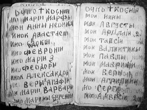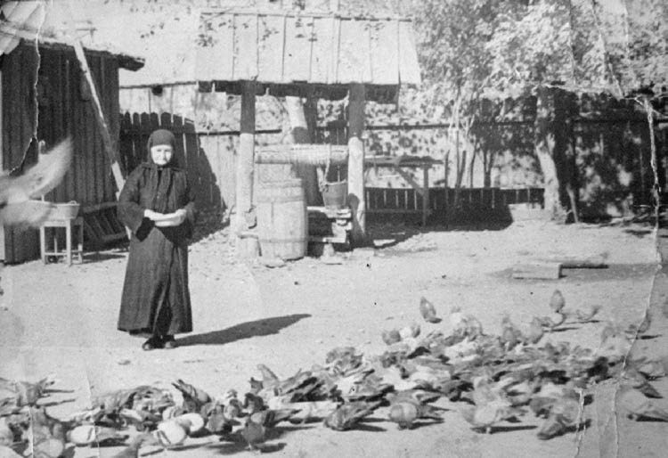 Другая черничка жила в с. Верхняя Тишанка Воронежской обл. В монашестве ее звали Анастасия, а в миру – Ольга. Сельчане ее звали за глаза Ольга-Безручка, т. к. она с детства не имела рук, была инвалидом. Но верующие с. Тишанки рассказывают, что когда уже умерли почитаемая всеми матушка Модеста и монахиня Анастасия, а храм еще не открыли, то ходили молиться или на могилку матушки Модесты, или на могилку Анастасии («Безручки»), или молились и на братской могиле 9 мая, где воины похоронены. О монахине Анастасии удалось узнать от самых близких ей людей, монахинь, из числа черничек, с которыми она жила. «Звали ее Чибисова Ольга Николаевна, с детства имела короткие руки. Хозяйка дома звалась Власова Екатерина Тихоновна. Ольга Чибисова была пострижена в иночество с именем Александры. Семья, в которой родилась Ольга, была бедной: четверо детей и дедушка с ними, он за ними ухаживал. Ольга была из детей самой старшей»1076. «Она без рук ухаживала за детьми брата, сестры. Зубами доставала чугунки. Дети ее звали „тятяка“. Бывало, ухватит их зубами за рубашку и не пускает куда-то бежать, если еще дело порученное не сделал. Она и Псалтирь, и другие духовные книги читала»1077. Набросит на себя одежду и придет к Екатерине Тихоновне. Та ее одевает в теплое, и идут они в школу. И из школы Екатерина ее также одевает. Потом они начали в церковь ходить (она была открыта) и читать Псалтирь начали1078. «Ольга стеснялась поначалу того, как смотрят на нее люди, потом привыкла. Полы мыла ногами. Зубами доставала детей из люльки, когда нянчила, еще в ту пору, когда с братом жила. Жена брата ненавидела Ольгу. Приехала Ольга к отцу Серафиму, а там была прозорливая матушка, и она ей сказала: „Вот, Ольга, больше не зайдешь к снохе на порог, так и останешься у Екатерины“. Так и получилось». Постоянно Ольга жила под старческим руководством: «Она ходила сначала к отцу Митрофану, потом к о. Василию и владыке Зиновию, Виталию. Я через них тоже старцев познала»1079. Тишанские чернички, ставшие монахинями, жили втроем. Со слов самой младшей из них Антонины Горловой, появление ее у черник произошло при следующих обстоятельствах: «Ольга и Екатерина не знали, брать или не брать меня к себе. И загадали сон. И Ольге во сне был луг зеленый необъятный такой. Ходят три ягненочка, и одного нужно поймать. Но, как и чем поймать, неизвестно. Вдруг откуда-то появился шнурочек, и им привязала ягненочка и повела». Сон решил все. Екатерина и Ольга решили брать Антонину Горлову к себе в дом и учить ее чтению. Съездили к схиигумену Митрофану – духовному отцу, он тоже благословил: „Берите, я тоже буду помогать вам“. К отцу Митрофану ездили часто. Мать Екатерина, у которой я жила, была очень начитанной, глубокой, Библию несколько раз прочитала. Была строгой. Она была хроменькая. Появилась я в доме Екатерины, уйдя от родителей в среду первой недели Великого поста. Посадили меня на старинную печку и дали Псалтирь. Села и сижу, думаю: как ее читать, – и боюсь обратиться к Екатерине и Ольге. Екатерина на машинке шьет, а Ольга на коленках молится. Я не дышу, смотрю на Псалтирь и плачу. И плакала до тех пор, пока не открылось мне, как читать, и стала все понимать. Сейчас Псалтирь почти наизусть знаю. Но и учили, конечно, меня сурово учила Екатерина, даже при людях. Книги от нее остались старинные, а умру, кому все достанется, не знаю. Екатери