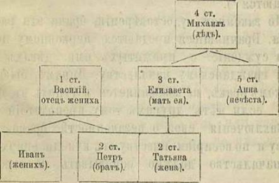 3. В прошении должно быть показано, в какой степени родства или свойства стоит жених по отношению к невесте. Достоверность этого показания должна быть засвидетельствована приходским священником, который прилагает к прошению расписание родства между женихом и невестою.