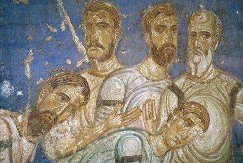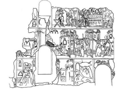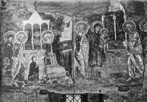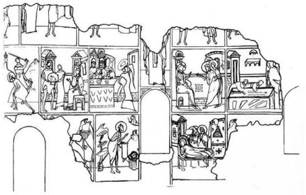 89. Сцены цикла Иоанна Предтечи. Фрески дьяконника собора Рождества Богородицы Антониева монастыря в Новгороде. 1125 г.