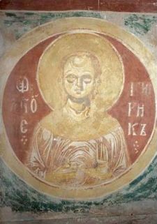 95. Св. Кир. Фреска северного предалтарного столба собора Рождества Богородицы Антониева монастыря в Новгороде. 1125 г.